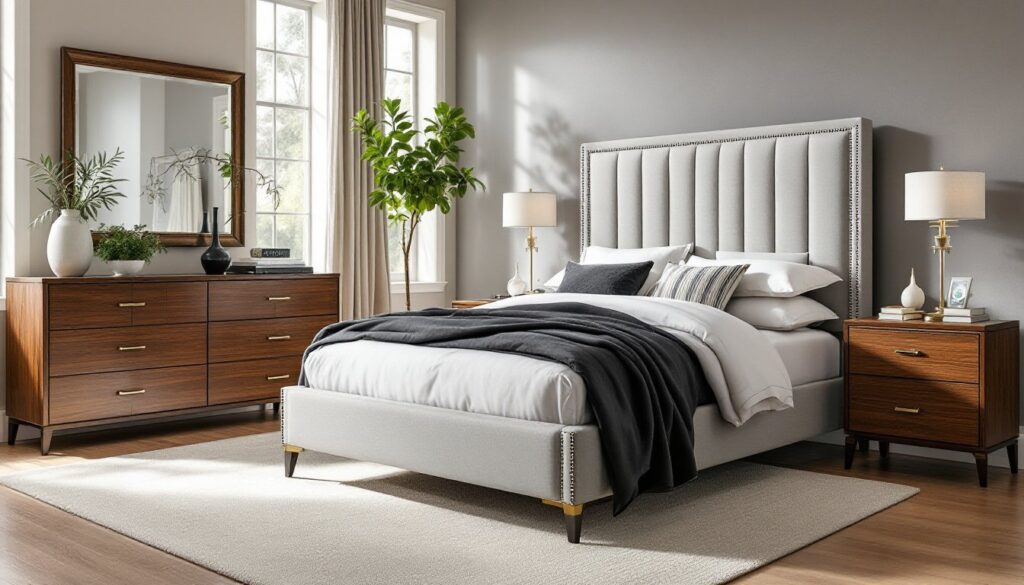 For coastal or farmhouse aesthetics, look for reclaimed wood finishes, plank-style headboards, and weathered or whitewashed tones. These sets often incorporate mixed materials, wood frames with woven rattan drawer fronts or metal accents. Homeowners seeking a cohesive luxury aesthetic should ensure bedroom furniture complements existing architectural details and flooring.